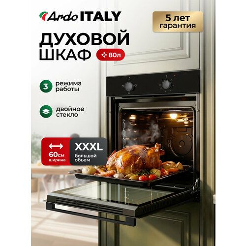 Встраиваемый духовой шкаф с объемом 80 литров - это отличное решение для вашей кухни, позволяющее готовить разнообразные блюда с комфортом. Его просторный внутренний объем делает его прекрасным выбором для семейных обедов и праздников, где нужно подготовить сразу несколько угощений. Модель обладает тремя полезными функциями, что позволяет вам выбрать оптимальный режим приготовления для различных блюд. Включенная паровая очистка и специальная эмаль SMART CLEAN обеспечивают легкость в уходе. Просто протрите поверхность, и вся грязь исчезнет, позволяя вашему духoviому шкафу всегда выглядеть как новым. Двойное стекло дверцы обеспечивает отличную теплоизоляцию, что способствует экономии электроэнергии и созданию комфортных условий для приготовления еды. Прочный материал не только защищает от ожогов, но и гарантирует долговечность. Съемные стекла дверцы упрощают процесс чистки, позволяя быстро и эффективно заботиться об устройстве. Панель управления выполнена из нержавеющей стали, что придает шкафу стильный и современный вид. Она удобна в использовании, так что вы сможете легко выставить нужный режим и время. Данный духовой шкаф относится к классу энергопотребления А, что означает его высокую эффективность и экономию ресурсов. Кроме того, производитель предоставляет 2 года гарантии, что подтверждает надежность и качество устройства. Встраиваемый духовой шкаф станет незаменимым помощником на вашей кухне и добавит ей современный штрих. Он идеально подходит для тех, кто ценит удобство, качество и стиль в создании кулинарных шедевров. Если вы ищете надежный духовой шкаф с большим объемом и удобными функциями, эта модель точно стоит вашего внимания.