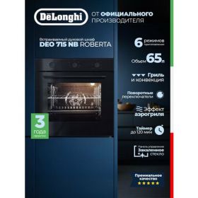 DeLonghi DEO 715 NB ROBERTA — это духовой шкаф, в котором точность технологий соединена с итальянским чувством формы. Лаконичный черный фасад из закалённого стекла создаёт ощущение глубины и чистоты линии, а каждый элемент продуман для абсолютного комфорта при ежедневном использовании.