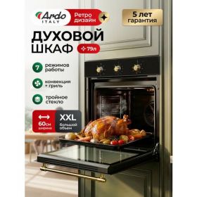 Погрузитесь в мир настоящей домашней кухни с духовым шкафом Ardo. Эта модель воплощает в себе лучшие черты классики: она проста в использовании, долговечна и обладает уникальным дизайном. Вместительная эмалированная камера легко вмещает праздничный гуся или несколько противней с пирогами. Благодаря системе конвекции и комбинированным режимам нагрева, блюда равномерно пропекаются и остаются сочными. А благодаря хромированным направляющим и продуманной системе охлаждения, эксплуатация становится максимально удобной и безопасной. Ardo BO58RA2 — это ваш надежный партнер для кулинарного творчества.