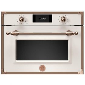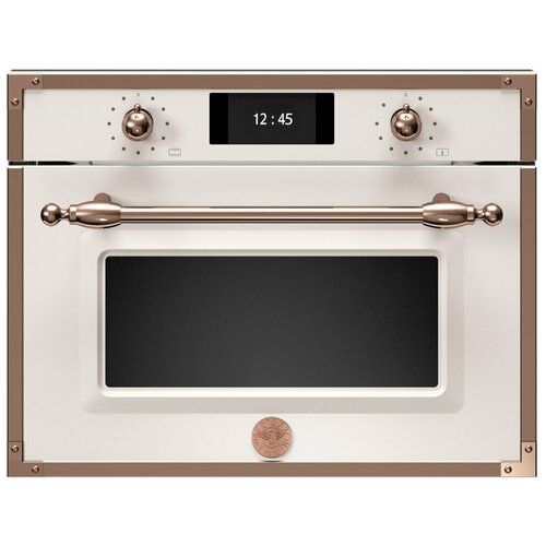 Комбинированный с пароваркой встраиваемый духовой шкаф Bertazzoni серии Heritage имеет компактные размеры 60x45 см и 7 функций. Объем духовки 31 литр, полость духового шкафа с двумя уровнями приготовления отделана нержавеющей сталью, он достаточно большой, чтобы готовить для всей семьи, и сочетает в себе традиционную духовку с конвекцией и грилем. Функция пара обеспечивает быстрое и полезное приготовление. Полностью сенсорная панель управления с TFT дисплеем, в настройках которого можно выбрать меню на русском языке, дверца с плавным открыванием для удобства использования.