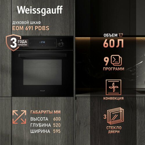 Духовой шкаф электрический Weissgauff EOM 691 PDBS черный