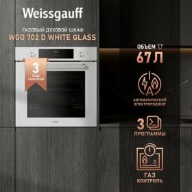 НАЙТИ ВЫГОДНЕЕ - Духовой шкаф газовый Weissgauff WGO 702 D WHITE GLASS 3 года гарантии, Объем 67 литров, Газ-контроль, Электрический гриль, Телескопические направляющие, Каталитическая очистка