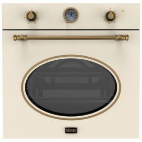 Классический дизайнКлассический дизайн - это цвета, поворотные регуляторы, выполненные под бронзу, ручка дверцы и другие элементы духового шкафа, задача которых создать идеальное сочетание с натуральными материалами и фурнитурой кухонной мебели в классическом или ретро стиле. Часы в ретро стилеВнешний вид часов, расположенных на панели управления выполнен в классическом, традиционном стиле. Хотя каждый элемент часов от стрелок до цифр выглядит, как и много лет назад, но внутри скрывается высокая функциональность современного электронного таймера, полностью управляющего процессом работы духового шкафа - от включения до автоматического отключения по истечению заданного времени. Электронный таймерЭлектронный таймер поможет установить время продолжительности приготовления, после которого духовой шкаф остановит свою работу, а также установить время отложенного старта, который включит духовой шкаф в необходимый момент и самостоятельно отключит его по истечению времени. Электронный таймер позволяет устанавливать акустический сигнал, который подается по истечению заданного времени даже, если духовой шкаф не находится в режиме приготовления.6 режимов нагреваШесть режимов нагрева позволяют приготовить любое блюдо, используя нагревательные элементы, расположенные в разных частях камеры. Телескопические направляющие надежно удерживают противень на одном из нескольких уровней, что дает еще больше безопасности и комфорта – противень не нужно удерживать в руках, чтобы проверить качество приготовления блюд. ГрильЭто способ приготовления пищи с помощью теплового элемента, который расположен над готовящимся блюдом. Благодаря высокой температуре пища быстро подрумянивается, приобретает красивую поджаристую корочку, оставаясь нежной и сочной внутри. Освещаемая камера духового шкафаВключив лампу, установленную внутри шкафа, можно видеть внутреннее пространство, не открывая дверцу и не выпуская тепло из рабочей камеры. Автоматическое отключениеСпециальная функция, которая автоматически отключает духовой шкаф в случае, если пользователь забыл это сделать сам. Время экстренного отключения зависит от заранее выбранной температуры. Можно быть полностью уверенным в безопасности приготовления.