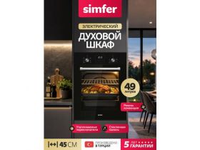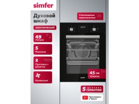 Духовой шкаф электрический встраиваемый Simfer 45см, 49л, 9режимов, гриль, конвекция, таймер, охлаждение, 5 ЛЕТ ГАРАНТИЯ 4592594276