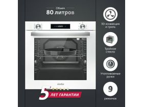 Электрический духовой шкаф Simfer B6EC69070 (9 режимов работы, конвекция, 80 л, гриль, таймер, белое стекло) 102406487631