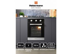 Духовой шкаф встраиваемый HBBO 4507.1 X, черный, усиленный гриль+ конвекция, размораживание,1 решетка и 1 глубокий противень, объем- 53 л, двойное стекло у дверцы,7 режимов работы, размер (В*Ш*Г) 595х450х580 мм, отделка фасада -стекло+нержавеющая сталь. 1