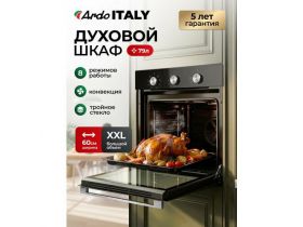 Электрический встраиваемый духовой шкаф Ardo BO18MB2 XXL, 73 литров, 8 режимов, конвекция 60 см 4602079279