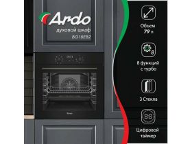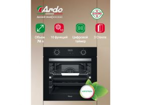 Ardo встраиваемый духовой шкаф 79 л, 8 режимов, конвекция, дисплей, тройное остекление дверцы, черный 4355190047