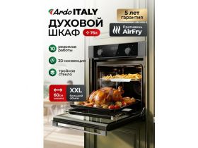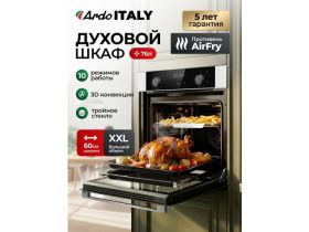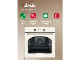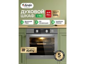 Встраиваемый духовой шкаф Ardo,10 режимов, 76 л, с Грилем и Конвекцией, Аэрогриль, утапливаемые переключатели,60 см 4392322134