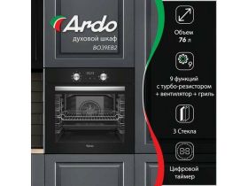 Ardo встраиваемый духовой шкаф 79 литров, 8 режим, конвекция, дисплей, утапливаемые ручки, тройное остекление дверцы 4316542703