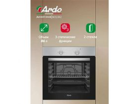 Встраиваемый духовой шкаф Ardo BO13MB2 XXXL, 80 литров, Двойное стекло дверцы, Съемные стекла дверцы, 3 функции, Эмаль SMART CLEAN, Паровая очистка, Класс энергопотребления А 4602095411