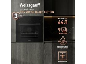 Духовой шкаф Weissgauff EOV 206 SB Black Edition 3 года гарантии, Электрический гриль, Конвекция, Объем 64 литра 1819152012