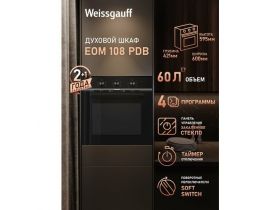 Духовой шкаф Weissgauff EOM 108 PDB 3 года гарантии, 4 функции, большой объем 65 л, эмаль легкой очистки 102747672708