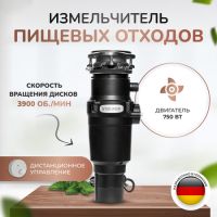 Для измельчения отходов используется высококачественный двигатель с мощностью 550 Вт и скоростью вращения 3250 об/мин. Мощный двигатель и острые лезвия измельчают абсолютно любые остатки и превращают их в пыль размером 1 мм. Частицы не блокируют доступ воды и легко смываются. Управление осуществляется при помощи беспроводного выключателя. Он крайне прост в эксплуатации и легко крепится на любую поверхность.