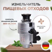 Объем перемалывающей камеры составляет 1.1 литра, что позволяет измельчать большое количество пищевых отходов.