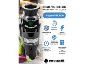 Измельчитель пищевых отходов Bone Crusher BC 600. Черный, глянцевый. С установочным комплектом труб. 4332881561