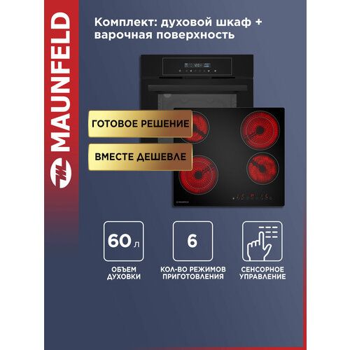 НАЙТИ ВЫГОДНЕЕ - Комплект MAUNFELD Bergen (Духовой шкаф AEOD6063B - 1шт, Варочная панель AVCE594D2BK - 1шт.)