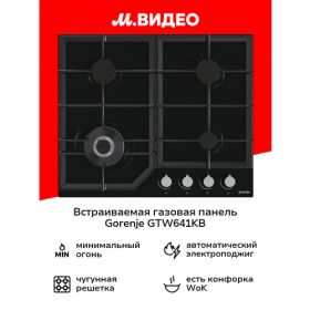 Gorenje GTW641KB – газовая панель, предназначенная для независимого встраивания в столешницу кухонного гарнитура. В вашем распоряжении четыре конфорки, в том числе wok – готовьте на посуде с разным диаметром и формой дна.