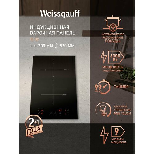 НАЙТИ ВЫГОДНЕЕ - Индукционная варочная панель Weissgauff HI 32 с технологией непрерывного нагрева, 3 года гарантии, 30 см ширина, таймер, защитное автоотключение