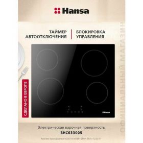 НАЙТИ ВЫГОДНЕЕ - Электрическая варочная панель Hansa BHC633005, встраиваемая, 60 см, быстрый нагрев за 10 сек, функция блокировки управления, стеклокерамическая поверхность с сенсорным управлением