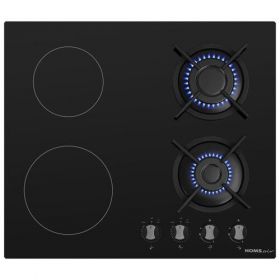 Встраиваемая варочная поверхность 60 см комби "Черное стекло" (Газ на стекле + стеклокерамика)