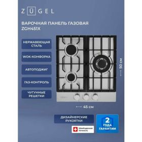 Варочная поверхность газовая ZUGEL ZGH451X - это надежный и функциональный выбор для вашей кухни.