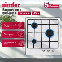 Газовая варочная панель Simfer H45V30W411 - модель, которая благодаря своим компактным размерам органично впишется в интерьер вашей кухни и сделает ежедневный процесс приготовления еды комфортным. Рабочая поверхность выполнена из нержавеющей стали – прочного и долговечного материала. На ней располагаются три конфорки - разные по диаметру и мощности пламени в них. А значит вы сможете выбрать оптимальную конфорку для приготовления разнообразных блюд. Для удобного пользования в поворотные переключатели встроен электроподжиг, который значительно упрощает работу с панелью. Начните готовить изысканные блюда вместе с варочной панелью Simfer