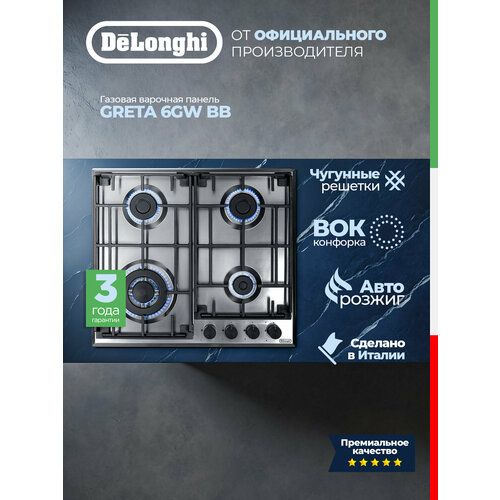 Газовая варочная панель DeLonghi GRETA 6GW BB – это надежность, безопасность и высокое качество от итальянского бренда.
