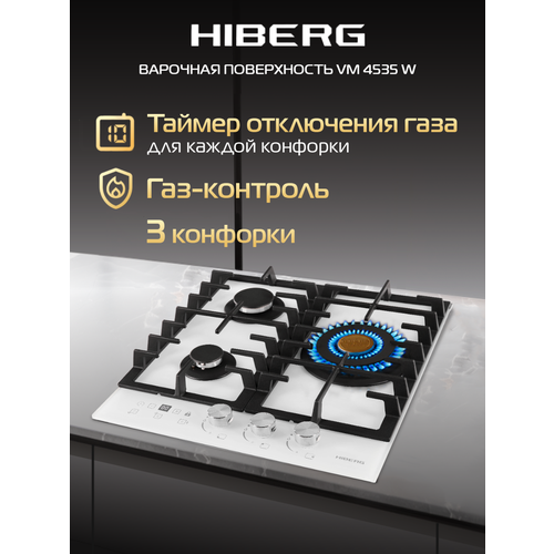Встраиваемая газовая варочная поверхность HIBERG VM 4535 из закаленного стекла, оснащена 4 конфорками и функциями: автоматический «электророзжиг», «газ-контроль» и сенсорный таймер отключения. В комплект Черной варочной поверхности входит дополнительный набор ручек регуляторов в ретро-стиле.