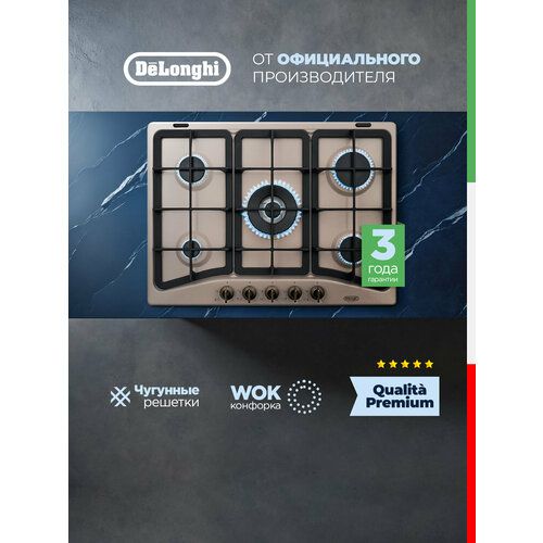 НАЙТИ ВЫГОДНЕЕ - Газовая варочная панель DeLonghi OWF 57 PRO RUS, 75 см, бежевая, WOK-конфорка, автоматический розжиг, газ-контроль