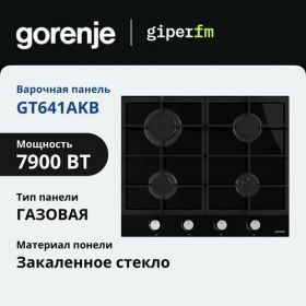 НАЙТИ ВЫГОДНЕЕ - Варочная панель газовая Gorenje GT641AKB, 2900 Вт, электроподжиг, закаленное стекло, чугун, газ контроль, черный