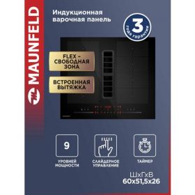 Индукционная варочная панель MAUNFELD MIHC604SF2BK с интегрированной вытяжкой представляет собой уникальное сочетание функциональности и стиля.