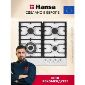 НАЙТИ ВЫГОДНЕЕ - Газовая варочная поверхность Hansa BHGW611839, 59 см, чугунные решетки, автоподжиг, газ-контроль, конфорка WOK