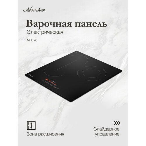 Электрическая варочная панель Monsher MHE 45 — это современное и функциональное решение для вашей кухни. Она изготовлена из стеклокерамики, что обеспечивает быстрый и равномерный нагрев, а также лёгкость в уходе. Чёрный цвет панели придаёт ей стильный и современный вид.
