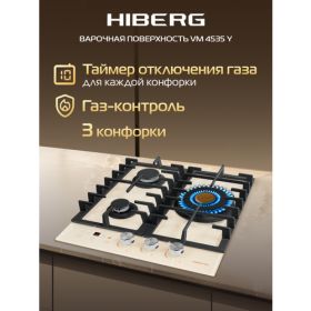 НАЙТИ ВЫГОДНЕЕ - Встраиваемая газовая варочная поверхность HIBERG VM 4535 Y из закаленного стекла в бежевом цвете