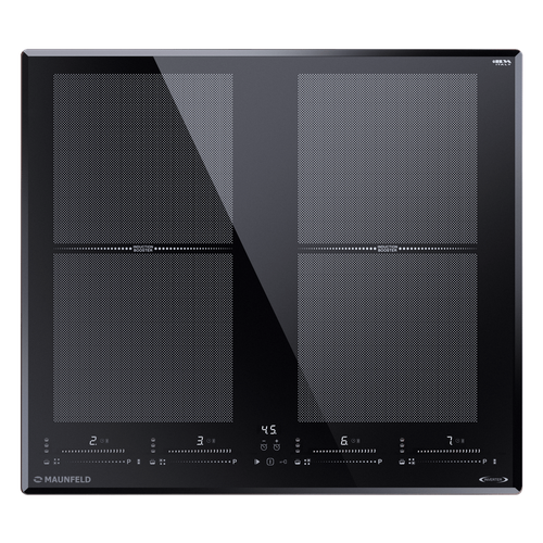 Flex Zone — представляет собой инновационную систему индукционных конфорок, которая обеспечивает полную свободу в использовании посуды любого размера, от турки до казана. Плита для нагрева задействует только ту поверхность, с которой соприкасается дно посуды и только там где вы ее поставили.
