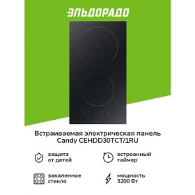 Candy DOMINO CEHDD30TCT/1 – электрическая варочная панель с сенсорным управлением и 9 уровнями мощности, которые позволят выбрать подходящий режим для приготовления любых кулинарных шедевров. Модель представлена в черном цвете, что позволит ей прекрасно вписаться в любой интерьер. Таймер до 99 минут сделает процесс взаимодействия с техникой удобней и приятней.
