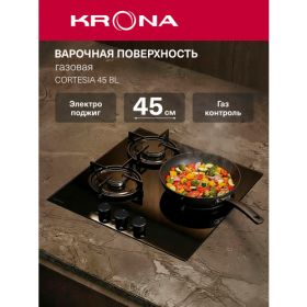 Газовая варочная поверхность CORTESIA 45 выполнена из черного закаленного стекла толщиной 8 мм. Модель оснащена экспресс-конфоркой с "Тройным пламенем", которая отлично подойдет для приготовления в посуде большого объема, а также приготовления стир-фрай или обжаривания мяса. Для вашего удобства и безопасности в модели предусмотрены автоматический электроподжиг и функция "Газ-контроль".