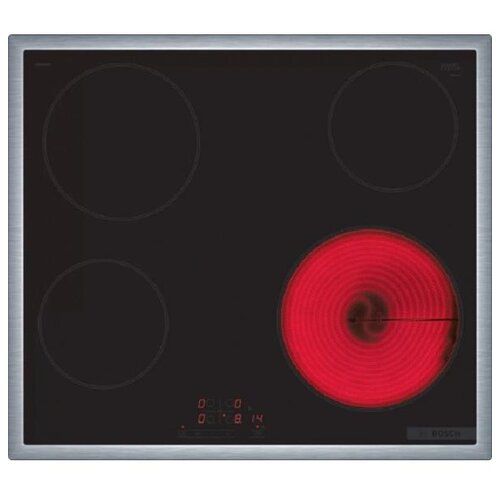 НАЙТИ ВЫГОДНЕЕ - Электрическая варочная панель BOSCH PKE645BB2E, с рамкой, цвет панели черный, цвет рамки серебристый