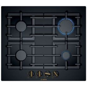 Газовая варочная поверхность Bosch PPP6B6B90R является стильной, надежной и практичной техникой. Она будет привлекательно смотреться в любом интерьере и позволит с высоким уровнем комфорта готовить несколько блюд одновременно. Четыре конфорки расположены на прочной и простой в уходе панели из закаленного стекла. Поворотные переключатели позволяют плавно регулировать интенсивность пламени и оснащены автоматическим электроподжигом, что способствует простой активации пламени. Индивидуальные чугунные решетки прочно удерживают посуду и снимаются для простой очистки. Для подключения к сжиженному газу в комплекте предлагаются дополнительные форсунки. Из других особенностей Bosch PPP6B6B90R отмечается система газ-контроля.