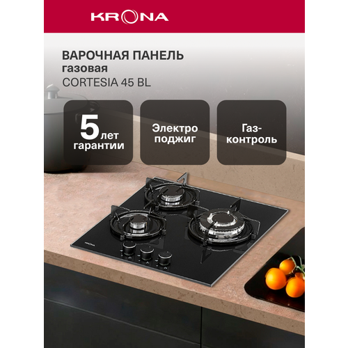 НАЙТИ ВЫГОДНЕЕ - Газовая варочная панель Krona CORTESIA 45 BL, цвет панели черный, цвет рамки серебристый