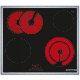 - Электрическая варочная поверхность Bosch PKN645BB2E оснащена четырьмя конфорками и выполнена из стильного черного стеклокерамического материала.