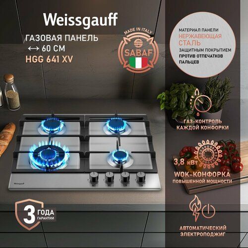 НАЙТИ ВЫГОДНЕЕ - Варочная панель Weissgauff HGG 641 XV WOK-конфорка, 3 года гарантии, автоматический электроподжиг, Рукоятки Hi-Tech, газ-контроль