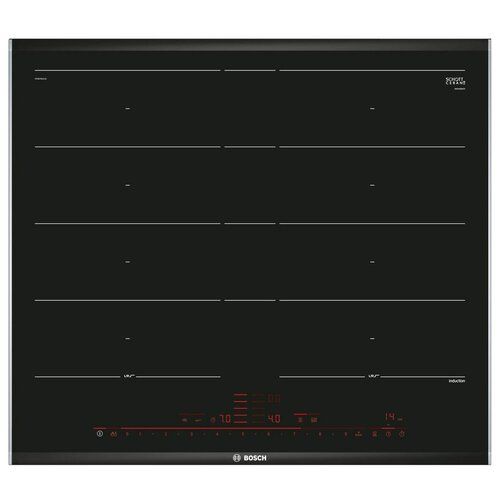 НАЙТИ ВЫГОДНЕЕ - Индукционная варочная панель BOSCH PXY675DC1E, цвет панели черный, цвет рамки серебристый