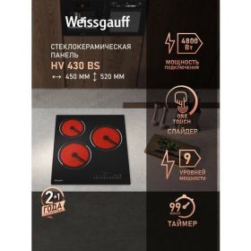 НАЙТИ ВЫГОДНЕЕ - Варочная панель со слайдером Weissgauff HV 430 BS защитное автоотключение, 3 года гарантии, 45 см ширина, таймер