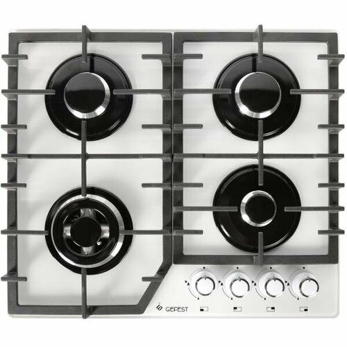 Газовая, стеклянная, белая, ШхГхВ, см: 60x52,5x10, газ-контроль, электророзжиг, чугунные решётки, двухзонная горелка