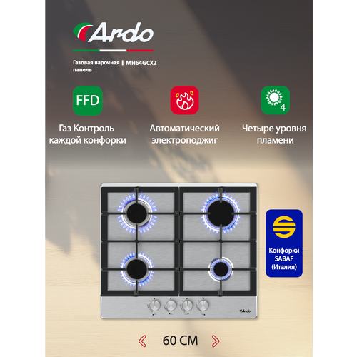 60 см-4G• Рабочая поверхность из нержавеющей стали• Передние управляющие ручки• Устройство системы газ-контроля• Итальянские горелки Sabaf• Автоматическое зажигание под ручкой• Решетка для посуды из чугуна•Эта элегантная варочная панель на 60 см с четырьмя конфорками в цвете Inox станет отличным дополнением вашей кухни. Она оснащена итальянскими горелками Sabaf, которые гарантируют отличное качество и эффективность приготовления пищи. Автоматический розжиг под ручкой упрощает запуск конфорок, делая их использование быстрым и удобным. Передние ручки управления позволяют легко и точно регулировать температуру. Устройство системы газ-контроля обеспечивает безопасность, предотвращая утечки газа и повышая защиту во время готовки. Чугунная подставка для кастрюль обеспечивает надежную поддержку и долговечность, выдерживая высокие температуры.