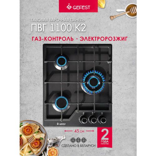 Газовая варочная панель GEFEST ПВГ 1100 К2 сочетает в себе надёжность, безопасность и удобство использования. Модель оснащена системой газ-контроля, которая автоматически прекращает подачу газа в случае затухания пламени. Это позволяет готовить без необходимости постоянного контроля за огнём. Включение конфорок осуществляется с помощью электророзжига, встроенного в ручки управления. Достаточно повернуть ручку, чтобы подать газ и зажечь пламя без использования спичек или зажигалок. На варочной панели установлены прочные и долговечные чугунные решётки, которые устойчивы к высоким температурам и не деформируются со временем. Для удобства предусмотрено фиксированное положение «малое пламя» — оно идеально подходит для приготовления блюд на медленном огне. Особенностью модели является наличие двухзонной горелки с увеличенной мощностью, которая позволит быстро приготовить любимые блюда или использовать крупную посуду. Варочная панель выполнена в черном цвете с поверхностью из эмали, которая легко очищается и в течение долгого времени сохраняет аккуратный внешний вид. Управление осуществляется с помощью механических поворотных ручек.