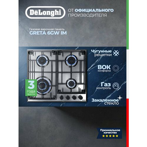 Газовая варочная панель DeLonghi GRETA 6GW IM – это надежность, безопасность и высокое качество от итальянского бренда.