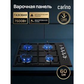 НАЙТИ ВЫГОДНЕЕ - Газовая варочная панель CARINO CH60Q40B401 60 см, газ-контроль, автоматический розжиг, эмалированные решетки